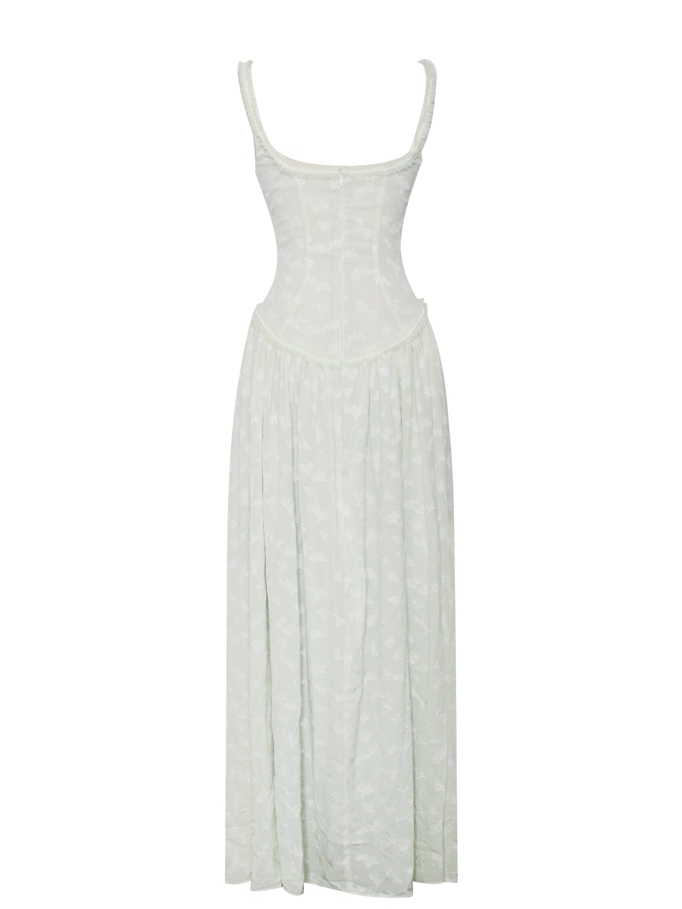 The Alexandra Corset Slit Dress exudes pure sophistication with its soft colour and elegant design. The airy fabric and feminine fit make this dress ideal for sunny days, parties or moments when you want to shine.